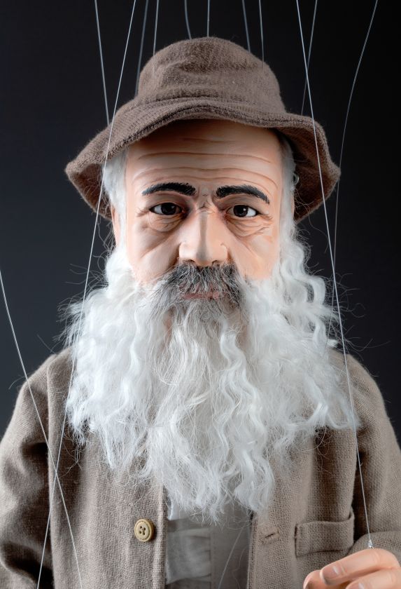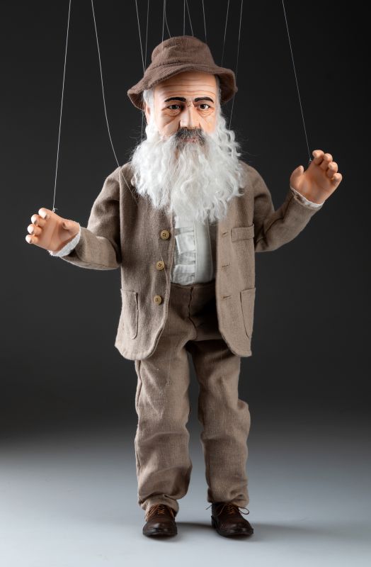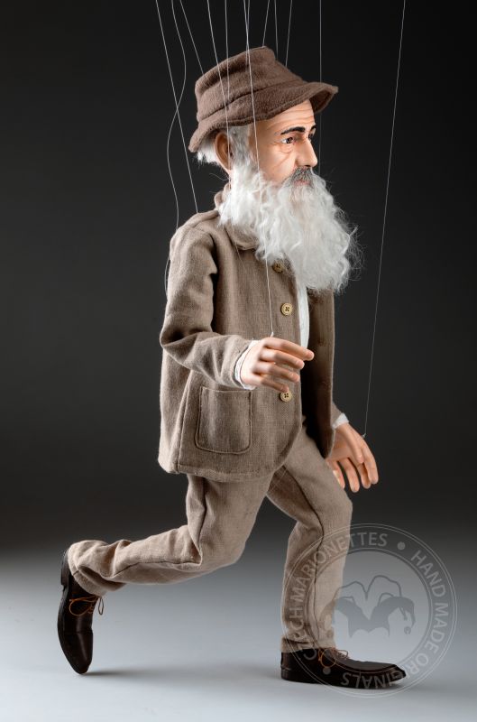 Tato loutka proslulého impresionistického francouzského malíře Claude Moneta byla vyrobená na zakázku dle klientova přání. Podle fotografií jsme vymodelovali 3D model obličeje, který se dále tiskne, zpracuje a namaluje. Vlasy a vousy jsou vyrobené z paruk a oblek je ručně šitý na míru. Volitelná je pohyblivost očí či úst. Tato loutka umí oba prvky.