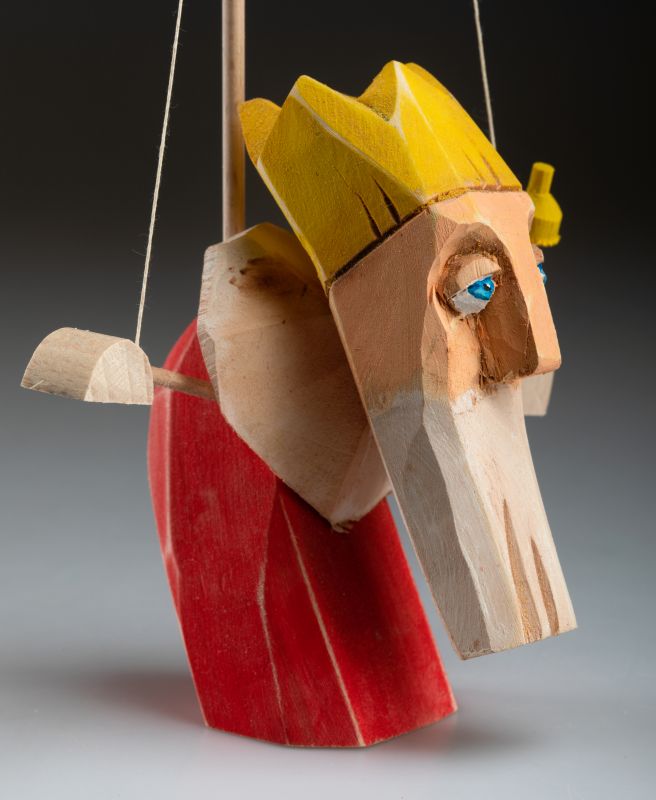 Veselký Král - Tyčová Vyřezávaná Loutka
