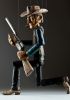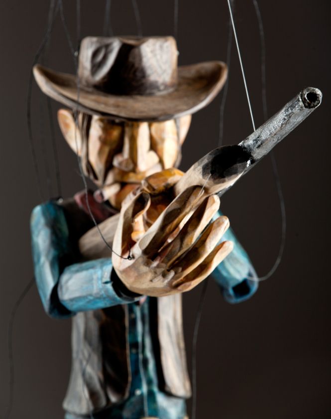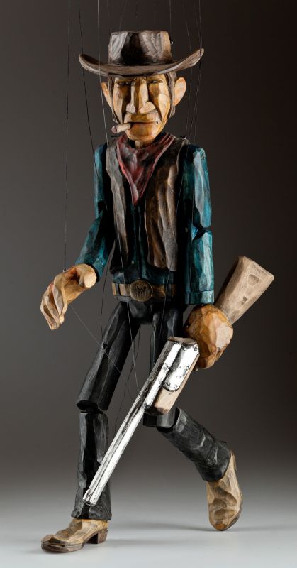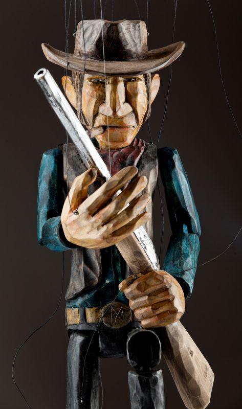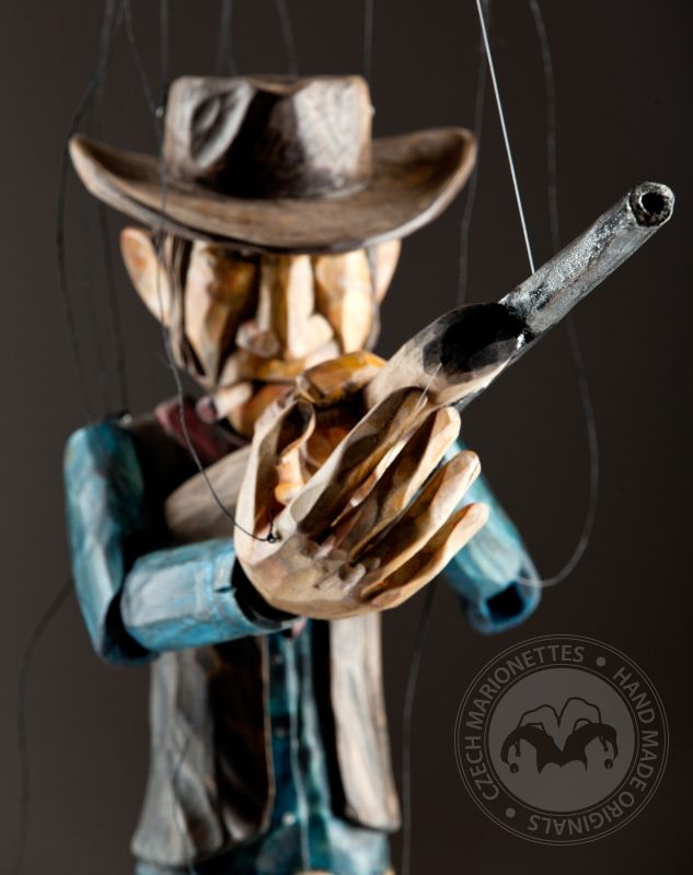 Tento charizmatický psanec je ručně řezaný z lipového dřeva a ručně patinovaný Martinovým jedinečným stylem. Jeho surový nános barvy skvěle postihuje emoci každého válečníka z této kolekce "Právem silnějšího". Loutka může držet pistoli, zamířit ji, podívat se na Vás se svým doutníkem bezstarostně v koutku úst a může při střílení zaujmout všemožné pozice. Stylový pistolník Butch má na sobě tradiční kovbojský klobouk, šátek na krk, vestičku, košili, kalhoty s detailním páskem a sponou a samozřejmě kovbojské boty. Získejte Butche a prožijte znovu dětství!