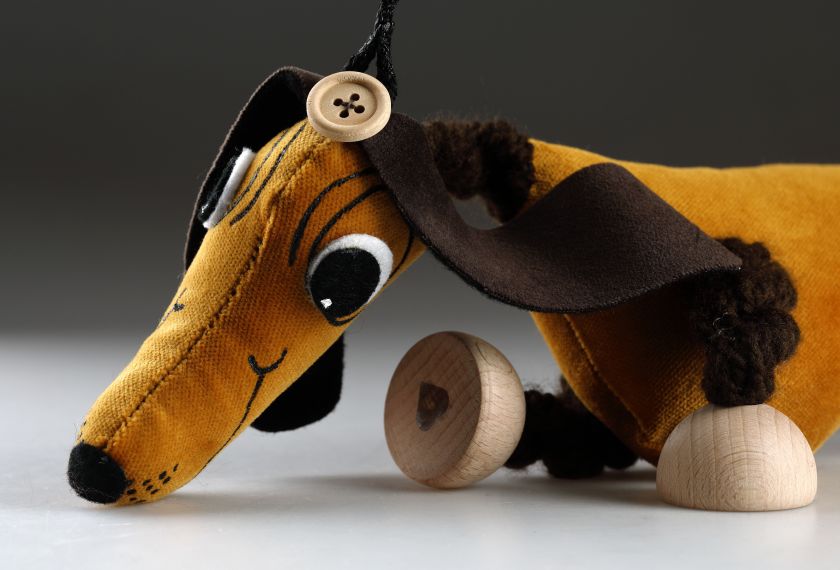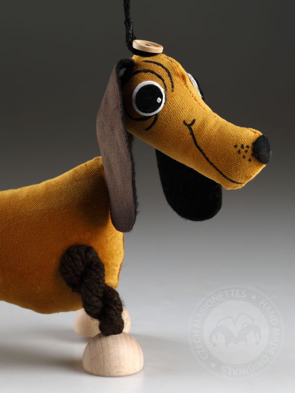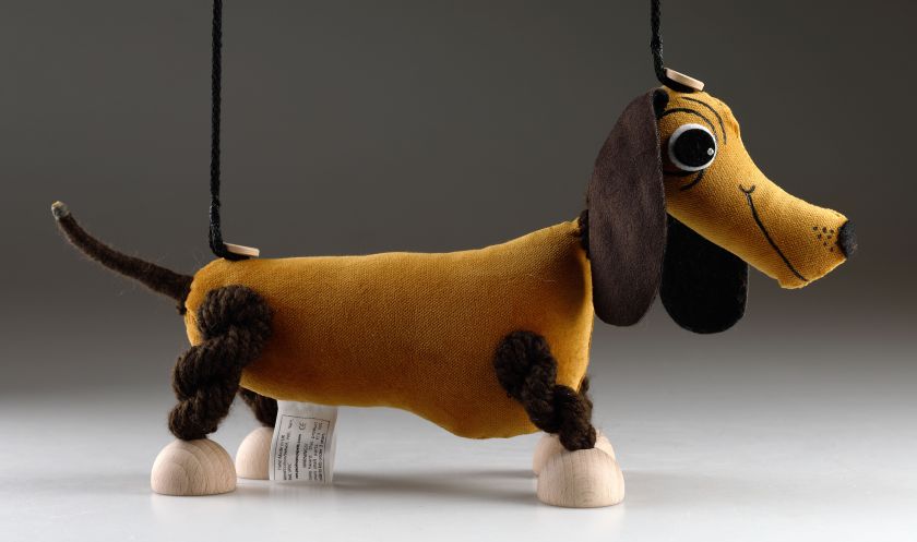 Tohoto jezevčíka si zamilují hlavně děti. Díky měkkému materiálu připomíná plyšovou hračku, nicméně je ovladatelný jako typická loutka.
