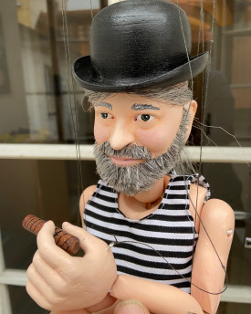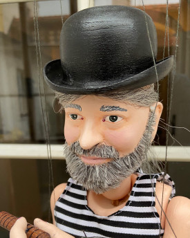 Tato loutka vznikla ve spoluprácí s řezbářem Jakubem Fialou, který navrhl a vyřezal původní vzor. Další krok už byl na nás a tak Vám nyní představujeme Elvise, který je vyrobený z odlitků, ručně malovaný a navázaný na performerské vahadlo, díky kterému je loutku radost ovládat.