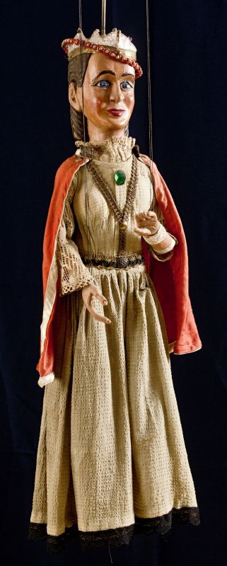 Die ursprüngliche antike Marionette der Königin, die in den Jahren 1870-1880 vom Puppenspieler Josef Allesa geschaffen wurde.
