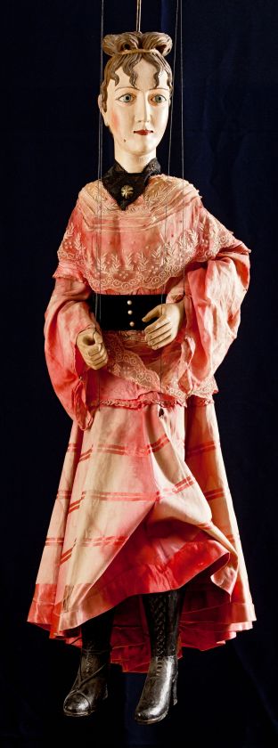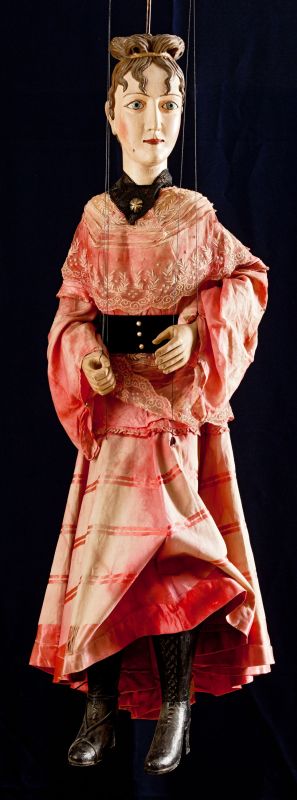 Die Marionette der Adligen wurde in den Jahren 1870-1880 vom Puppenspieler Josef Allesa geschaffen. Bei der Herstellung der Marionette wurden hochwertige Materialien aus dieser Zeit verwendet.