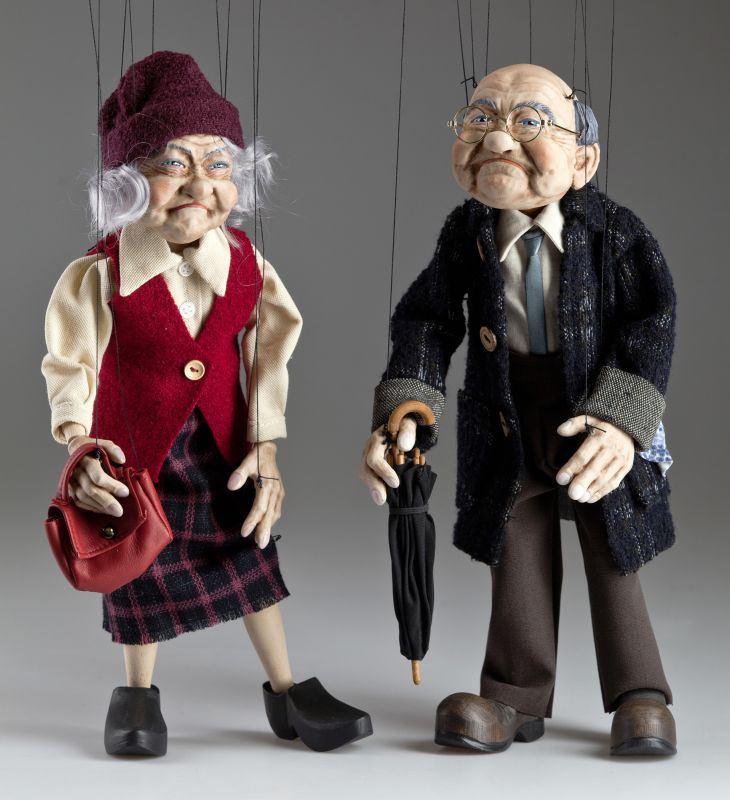Möchtest du unser altes Paar? Bestelle sie einfach, und in wenigen Tagen werden sie dir Freude bereiten :)) Schaue auch weiter auf Marionettes.cz und entdecke die anderen Cartoon-Marionetten. Schau dir die erstaunlichen Koch- oder Arztmarionetten, Michael Jackson, Jack Sparrow, Pinocchio und mehr an... Die Auswahl ist wirklich riesig ;)
