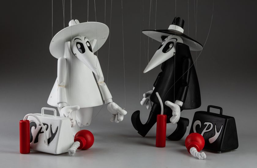 Spy vs Spy - handgeschnitzte Comic-Marionetten aus Holz