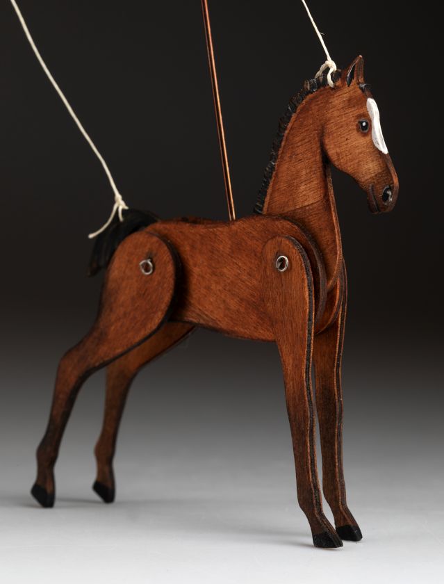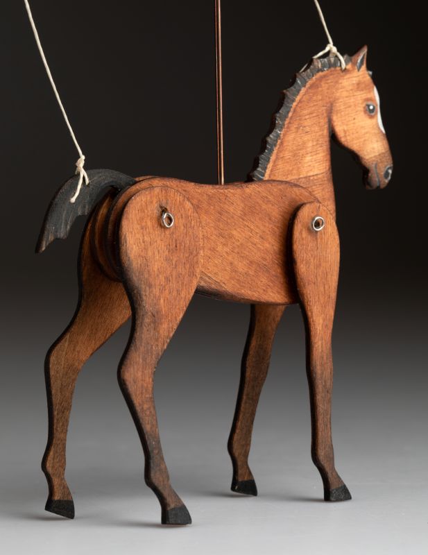 Süßes Fohlen als Deko-Marionette. Fantastische Marionette für alle Pferdeliebhaber. Handgefertigt in der Tschechischen Republik.