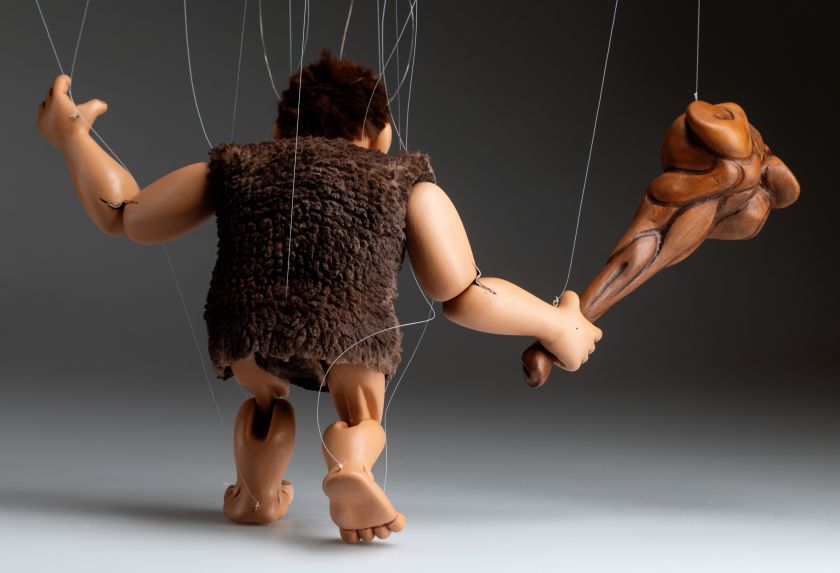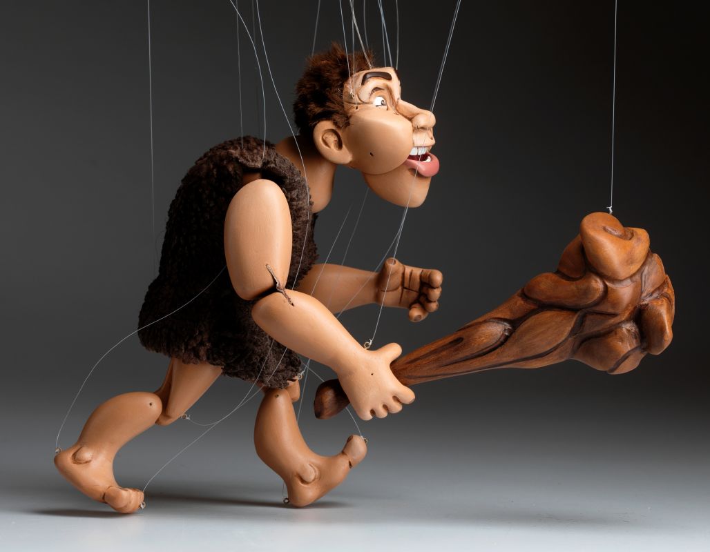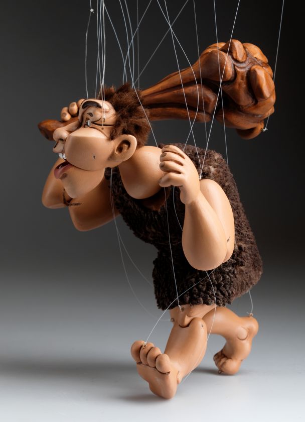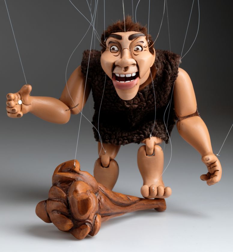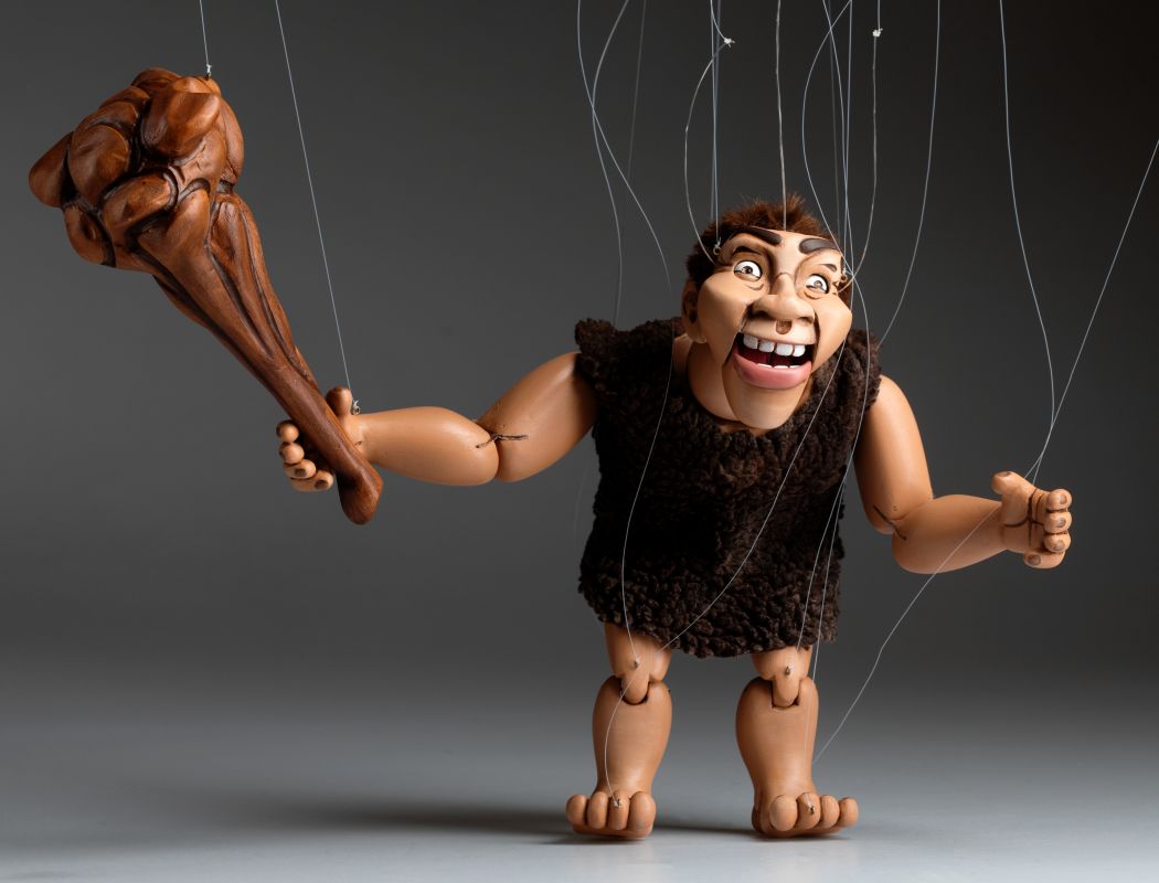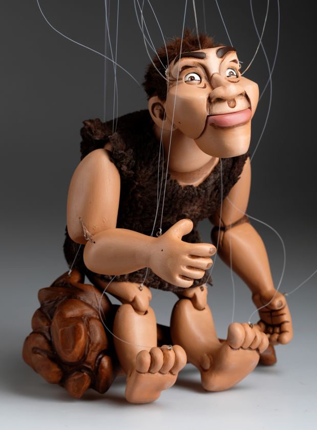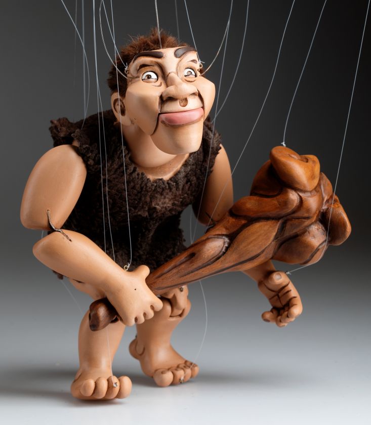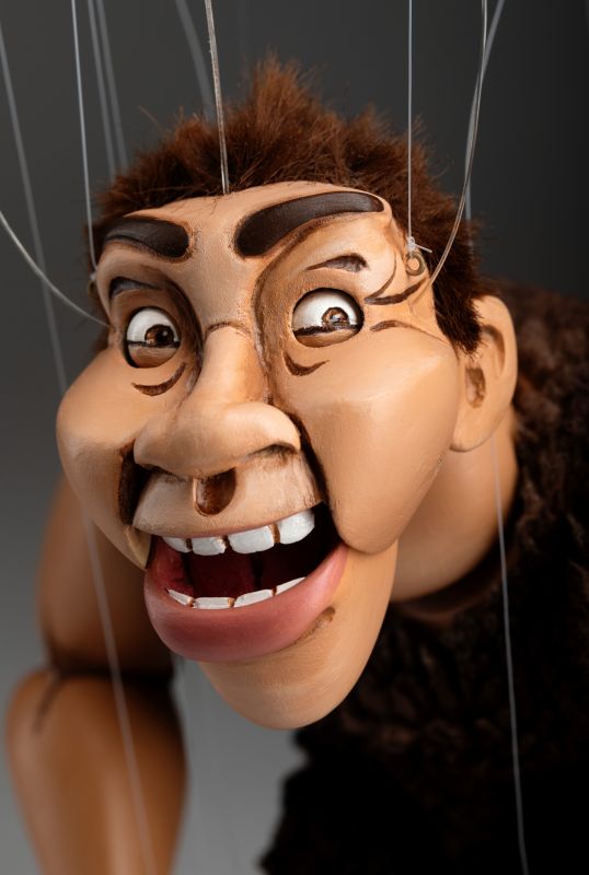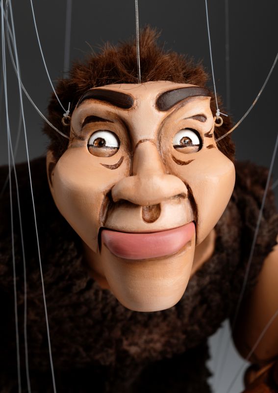 Wir stellen Ihnen das brandneue Mitglied unserer Marionettenfamilie vor. Es ist ein Höhlenmensch! Eine handgeschnitzte und handbemalte Marionette aus Holz. Er ist flippig, albern und ein bisschen verrückt!