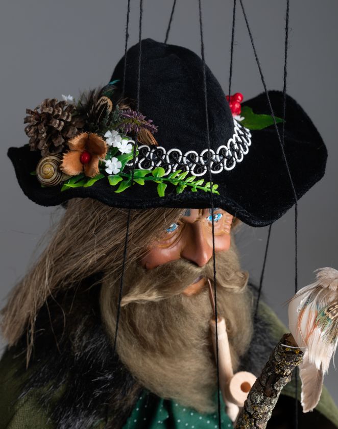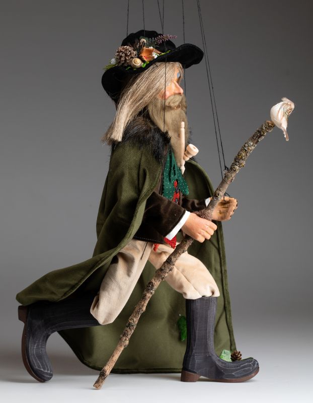 Diese Marionette ist eine schöne Version der klassischen tschechischen Figur Krakonoš. Krakonoš ist ein alter Mann mit magischen Kräften, der im tschechischen Riesengebirge lebt.