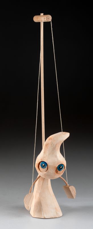 Die natürliche Textur des Lindenholzes verleiht der Marionette einen rustikalen Charme, wodurch sie sich nicht nur als spielerische Dekoration für ein Kinderzimmer eignet, sondern auch als originelles Accessoire für jeden Innenraum – perfekt für Liebhaber traditioneller Handwerkskunst und einzigartigen Designs.