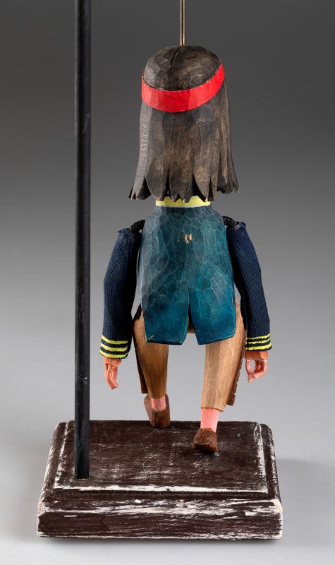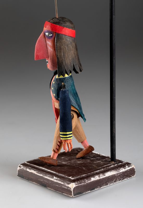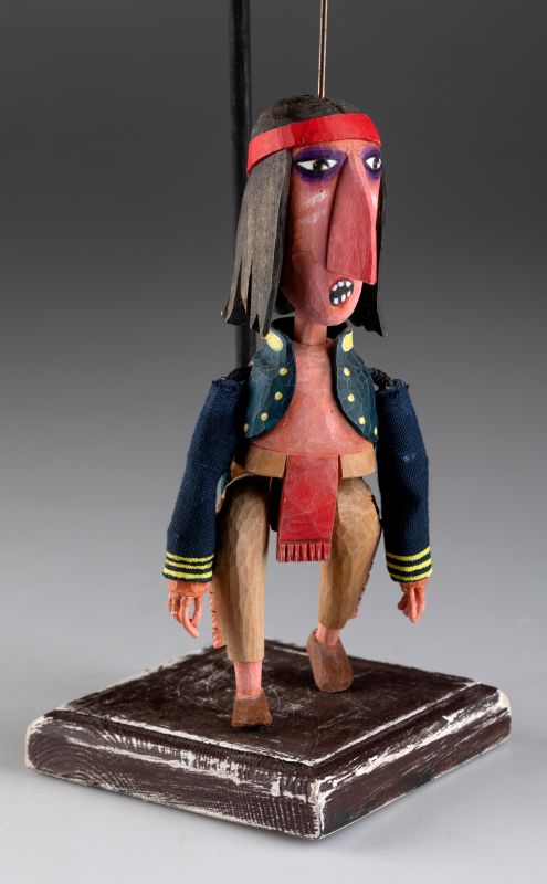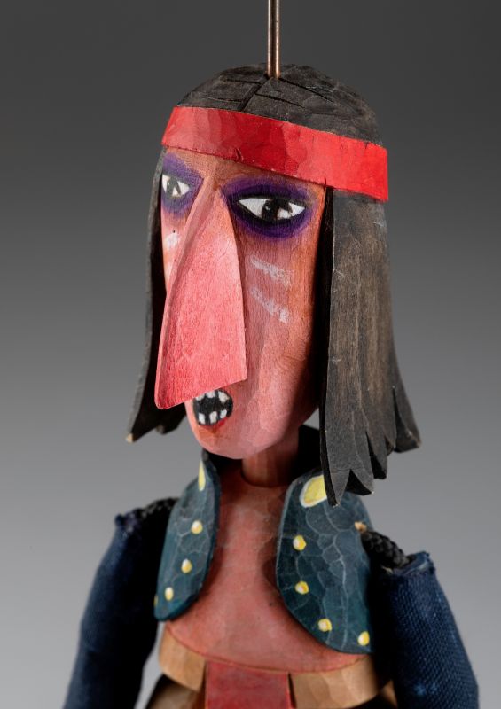 Die Marionette ist aus Holz geschnitzt und bemalt, um einen einzigartigen Stil und den Geist der indianischen Kultur zu verkörpern. Dank ihrer Authentizität und handgefertigten Verarbeitung ist sie ein perfektes Sammlerstück oder dekoratives Element, das jedem Interieur einen Hauch von traditioneller Kunst und einzigartigem Design verleiht.