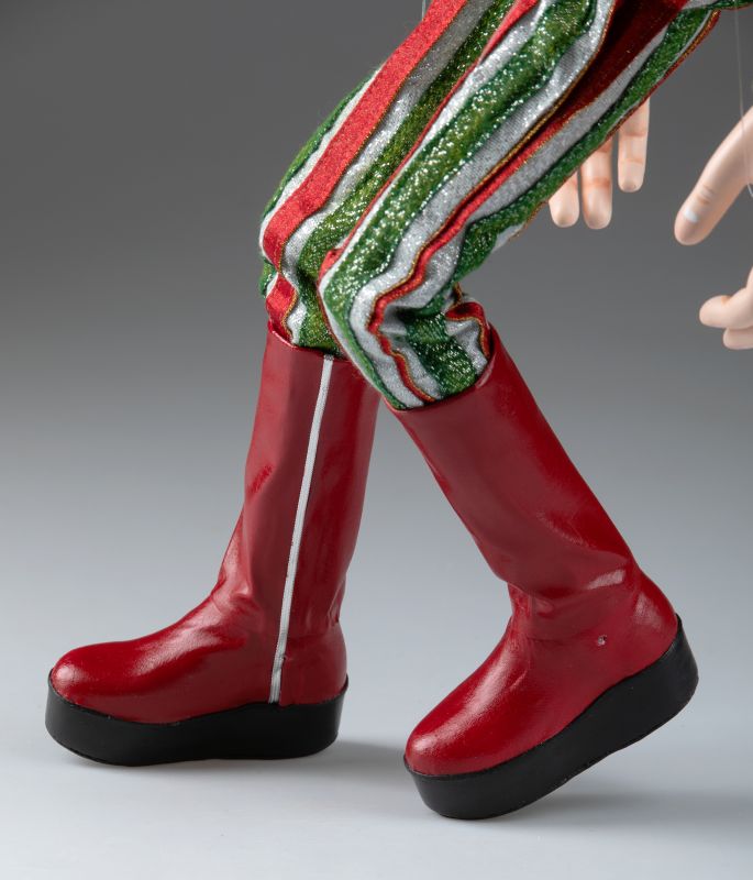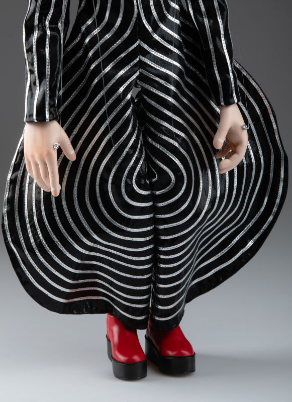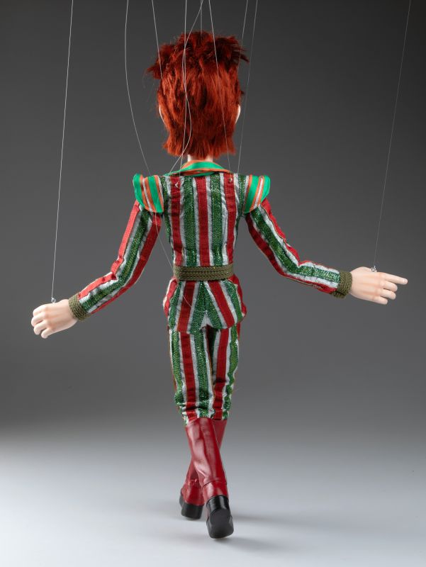 Erleben Sie den elektrisierenden Geist einer Musiklegende mit dieser außergewöhnlichen handgefertigten Marionette von David Bowie als Ziggy Stardust. In Prag von Experten gefertigt, fängt diese professionelle Puppe das ikonische Alter Ego mit beeindruckender Detailtreue ein – vom charakteristischen Blitz-Make-up bis hin zum markanten, theatralischen Kostüm.