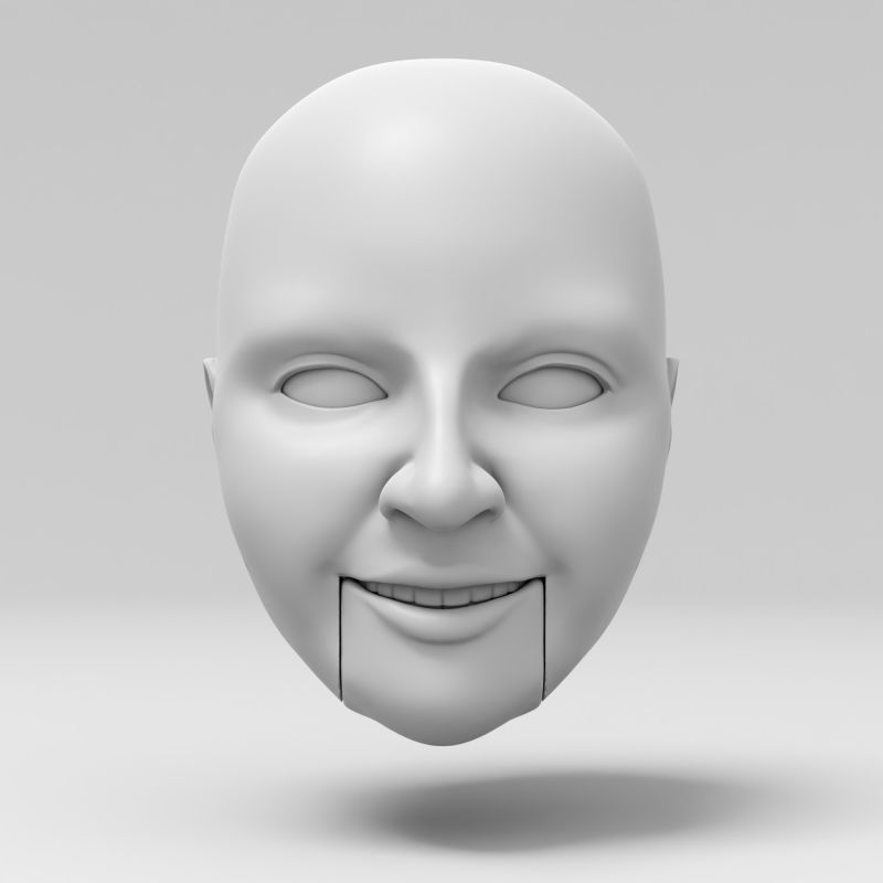 Kaufen und herunterladen Sie das Modell des Puppenkopfs - Lachelnde Frau zum Drucken Ihrer neuen Marionette. Sie können das Modell spielerisch auf jedem 3D-Drucker ausdrucken.