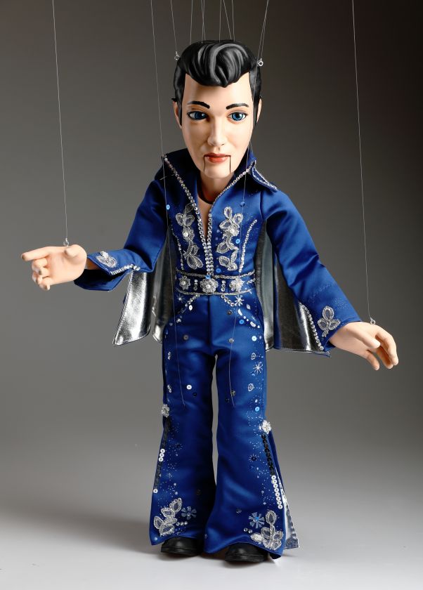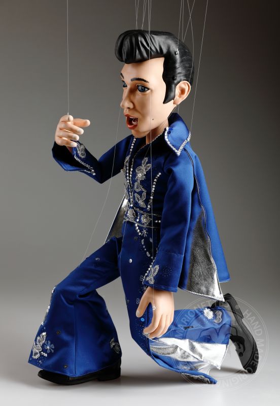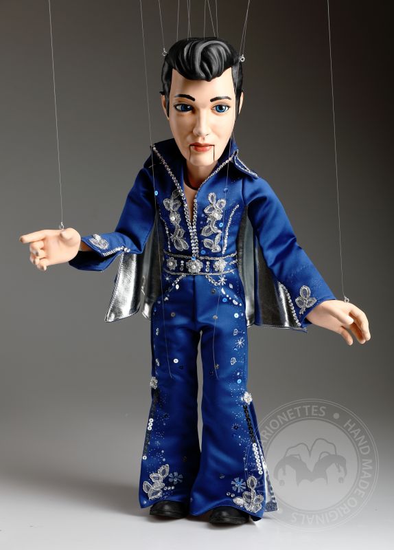Eine Marionette des Rock'n'Roll-Königs, die wirklich einfach zu spielen ist! In einer Qualität, die auch von professionellen Puppenspielern geschätzt wird. Elvis Presleys Puppe ist eine Marionette im Kabarettstil und dient zum Singen und Tanzen.
