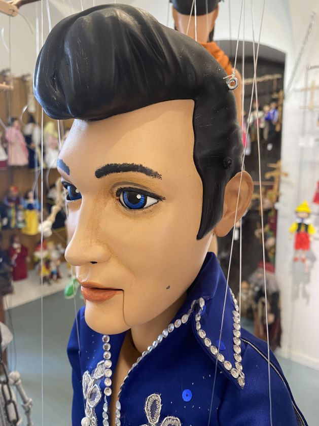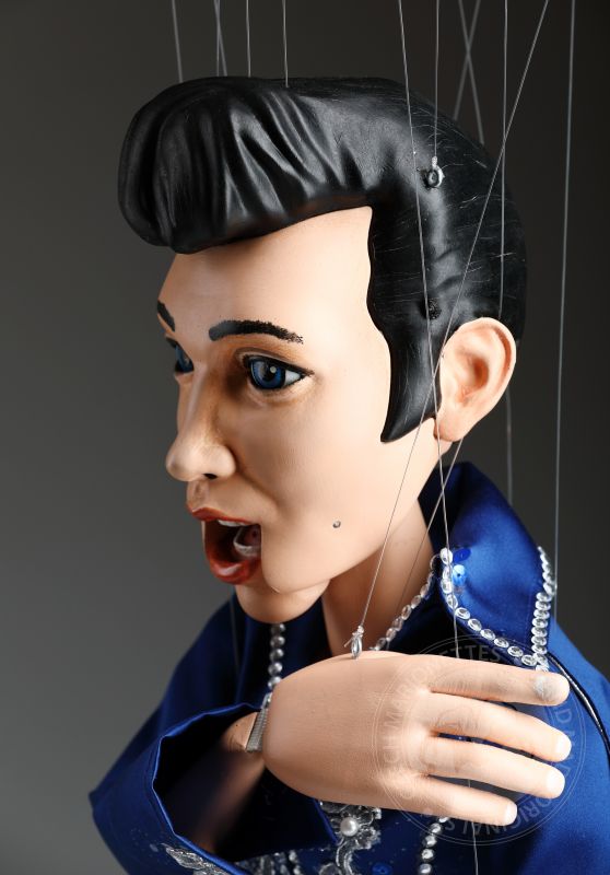 Marionnette de type cabaret, la marionnette d’Elvis Presley est faite pour danser et chanter.
