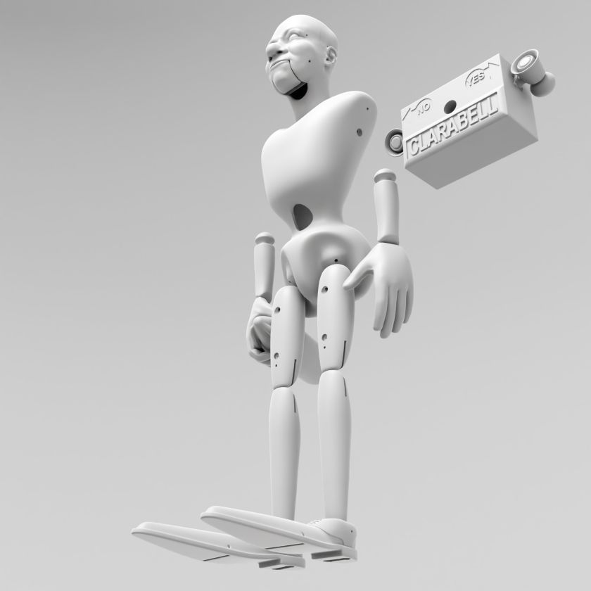 Werfen Sie einen Blick auf den lustigen Clown Clarabelle, Sie können sich von unserem Modell inspirieren lassen, das einen Wasserstrahl aus der Schachtel hat, die es hält, und ein Horn, das an der Wippe befestigt ist. Sie können die Datei herunterladen und Ihren eigenen Clown herstellen