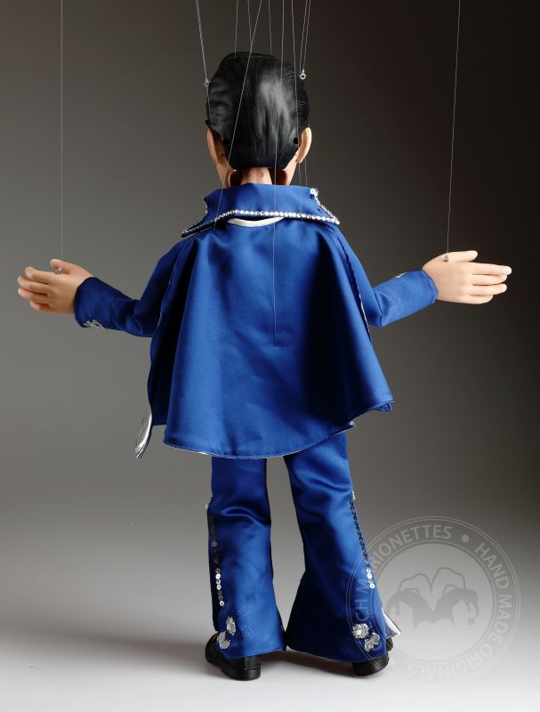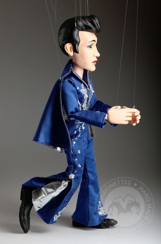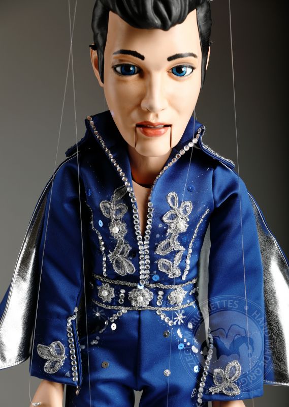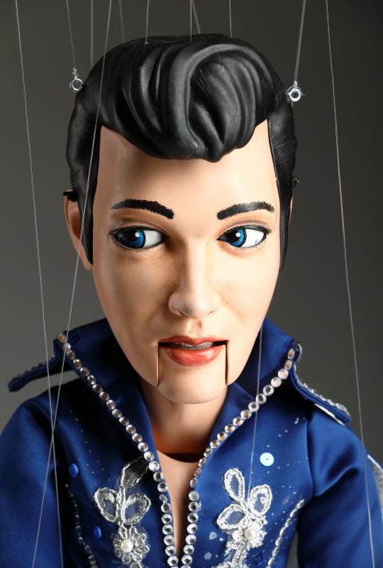 Marionnette de type cabaret, la marionnette d’Elvis Presley est faite pour danser et chanter.