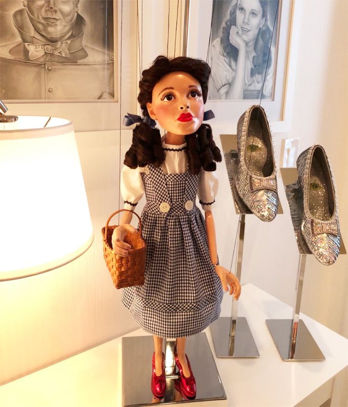 Benutzerdefinierte Marionette basierend auf einem Foto der bekannten Schauspielerin Judy Garland, die die Rolle der Dorothy im Film Wizard of Oz spielte. 3D erstellt, gedruckt und handgefertigt in unserer Werkstatt.