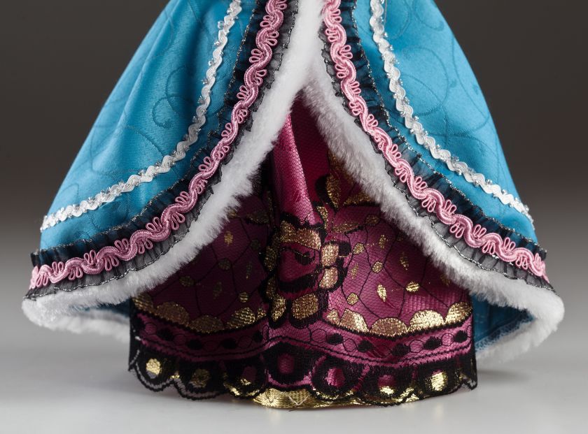 Die magische Marionette der Gräfin in reich verzierten, fast barocken Kleidern. Sehen Sie die schönen Details des Spitzenkleides und die sanfte Gesichtsbemalung.
