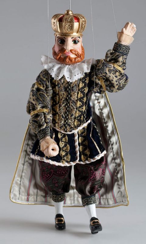 König Rudolf ist eine Marionette, die sich für jedes Interieur eignet, als Geschenk oder als originelles Spielzeug.