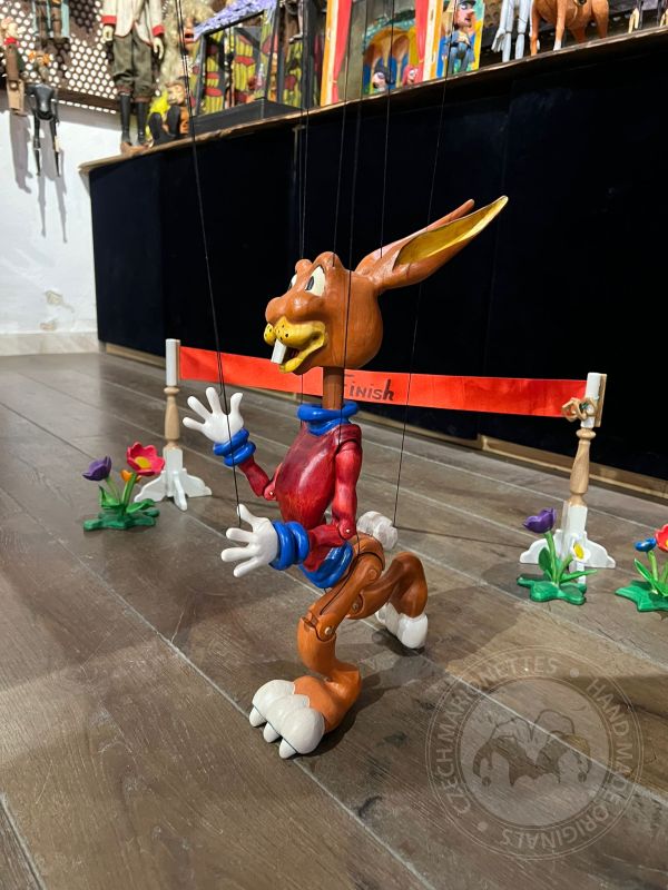 Rabbit and Turtle - custom wooden marionettes
