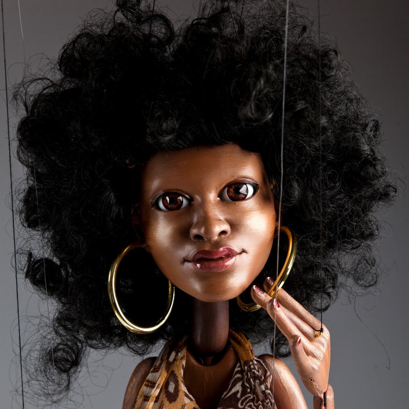 Buy and download model of puppet head - beautiful Afro-american princess for printing your new marionette. You can playfully print the model out on any 3D printer.