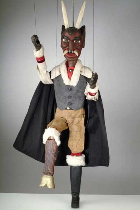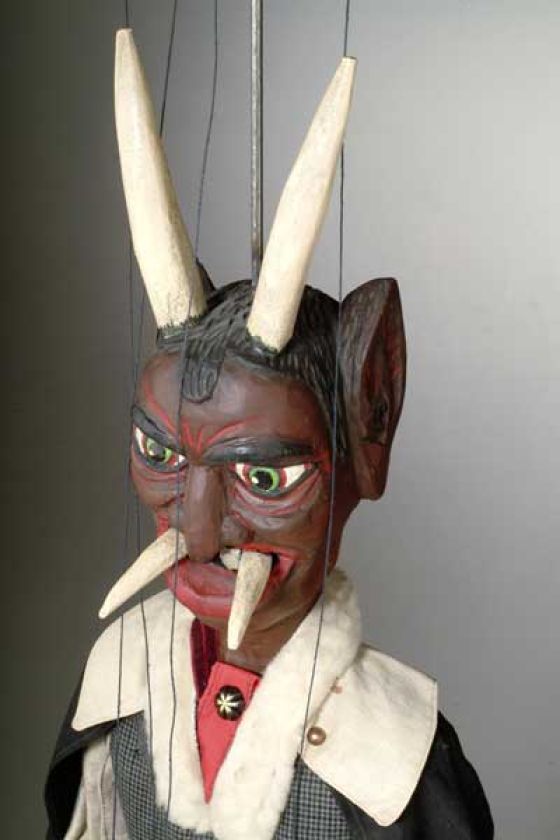 This marionette of Devil was created by carver Jiri Soucek from Mlada Vozice. The marionette was created by design of Josef Lada (well known painter and illustrator) in 1925.