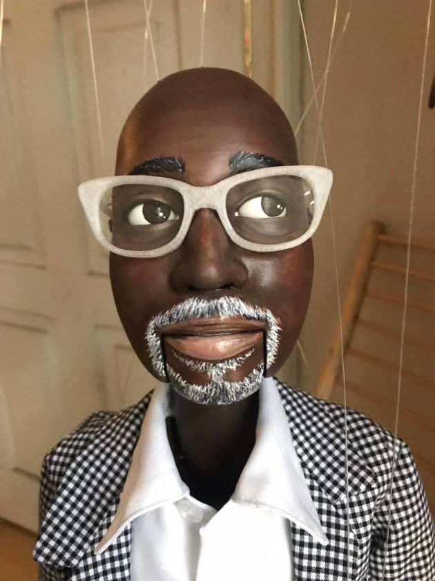 Marionette of a man – made based on a photo, movable mouth and eyes