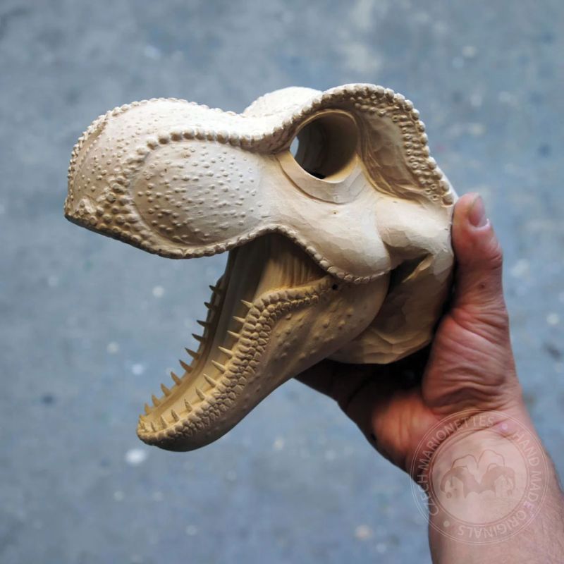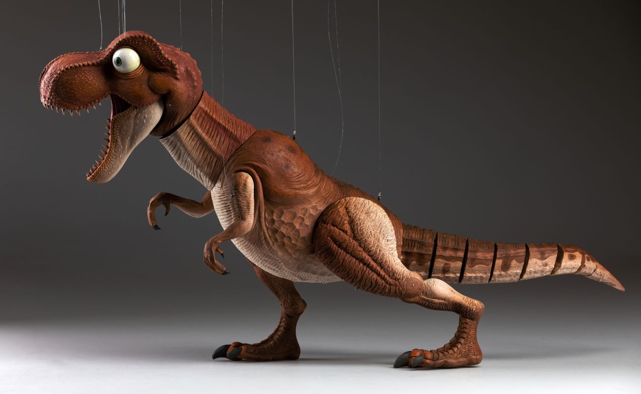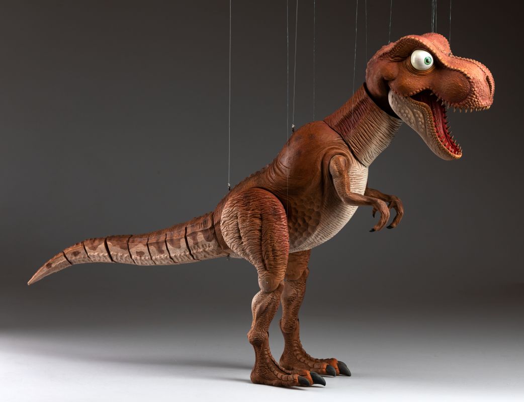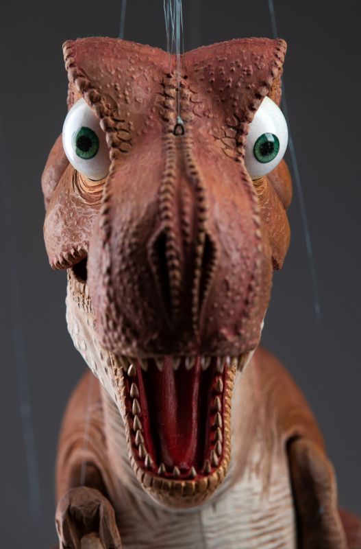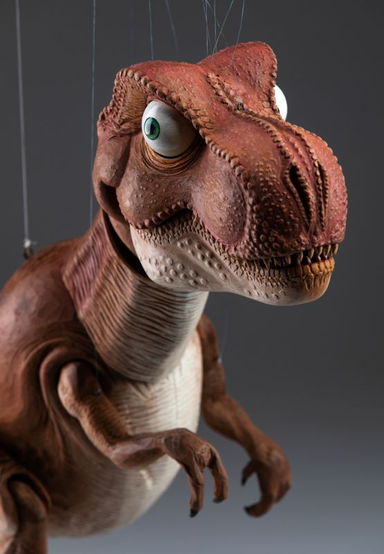 This absolutely stunning creation of T-Rex marionette was made in a cooperation with the artist Václav Krčál Jr. The whole marionette is hand-carved from linden wood and hand-painted afterwards.
