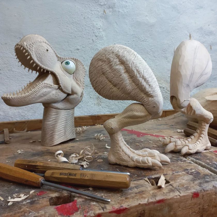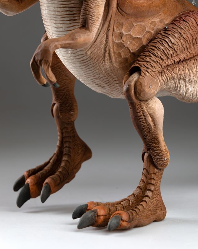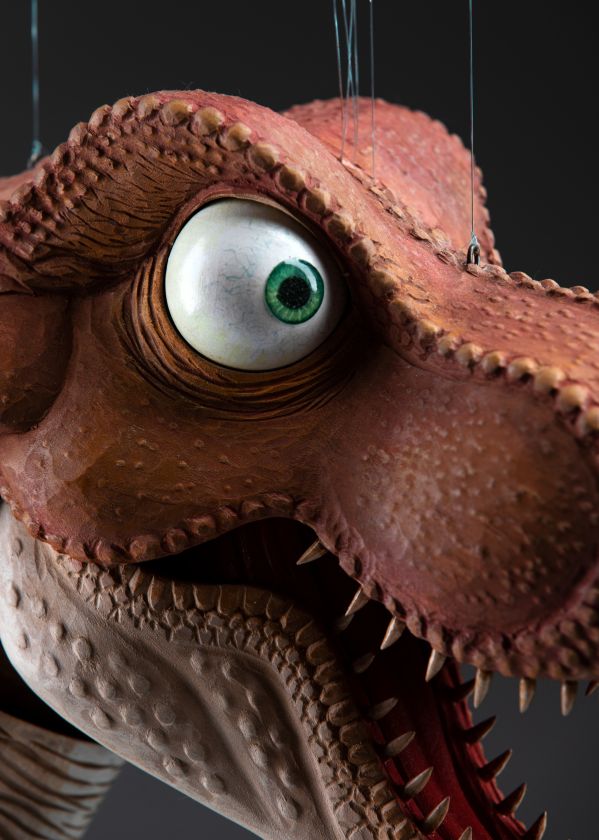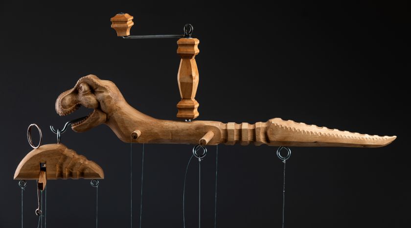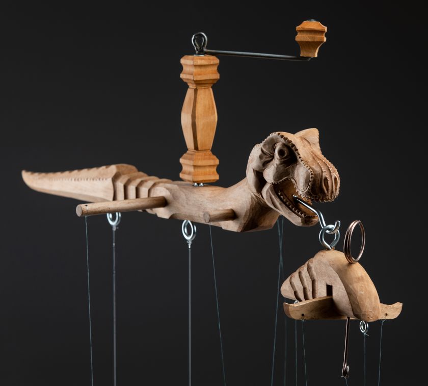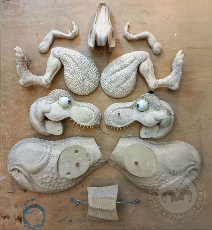 This absolutely stunning creation of T-Rex marionette was made in a cooperation with the artist Václav Krčál Jr. The whole marionette is hand-carved from linden wood and hand-painted afterwards.