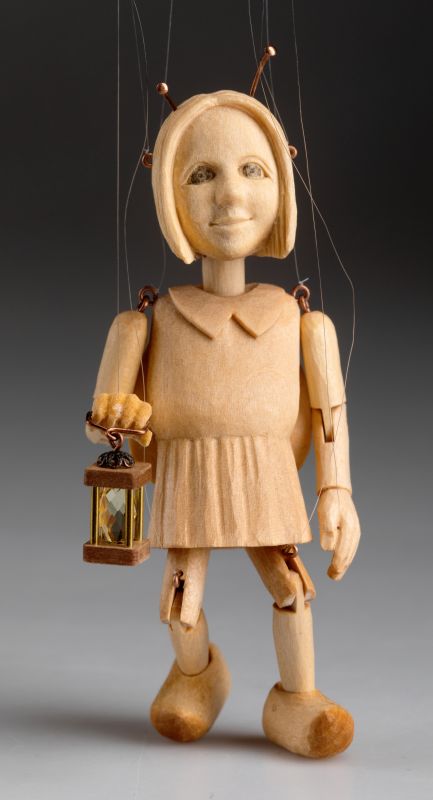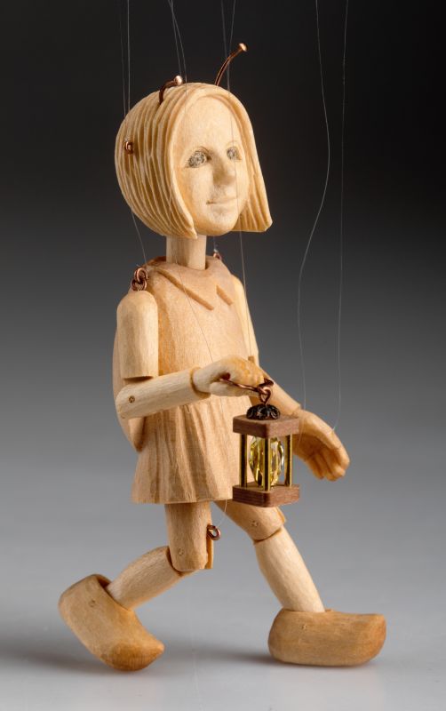 Our new, stunning wooden hand-carved marionette of a little ladybug is truly unique. This marionette, though small, is full of captivating details. You may notice a tiny glowing cocoon inside, representing light, or delicate antennae on its snout. Carefully carved from lime wood, this marionette moves with remarkable ease despite its size! It's a genuine work of art showcasing the beauty of puppet craftsmanship.