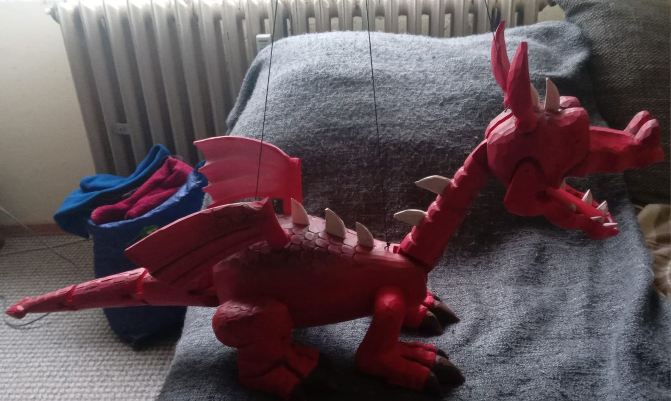 Wooden red dragon plus extra parts for marionettes