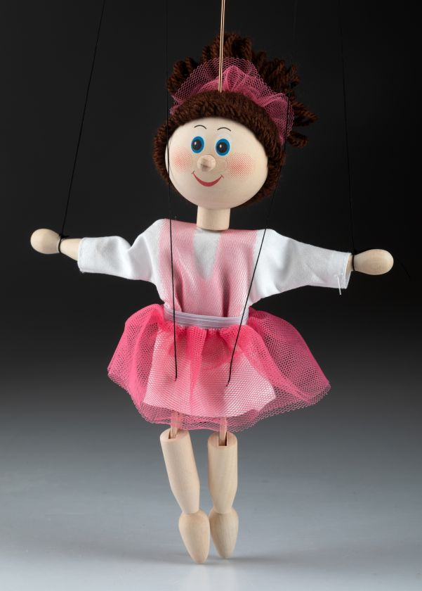 Introducing our delightful Little Ballerina marionette! Handmade with exquisite detail, she wears a pink tutu and ballet slippers, ready to charm with her graceful movements. Her expressive eyes and hand-painted smile make her an enchanting gift or decoration, perfect for ballet lovers and puppet collectors alike. Let her bring elegance and magic to your collection!