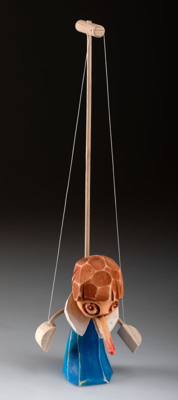 This beautiful, hand-carved and hand-painted legendary Pinocchio is the perfect gift not only for fans of the story but also for collectors. The simple yet artistic design, featuring a blue outfit and movable arms, gives the puppet an authentic and playful character.