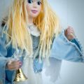 This Angel marionette is wearing a handmade dress available in pink or blue fabric. She’s also holding a little jingle bell in her hand. Her beautiful face is hand panited with care and you can't help but notice her big blue eyes that smile at you all the time!