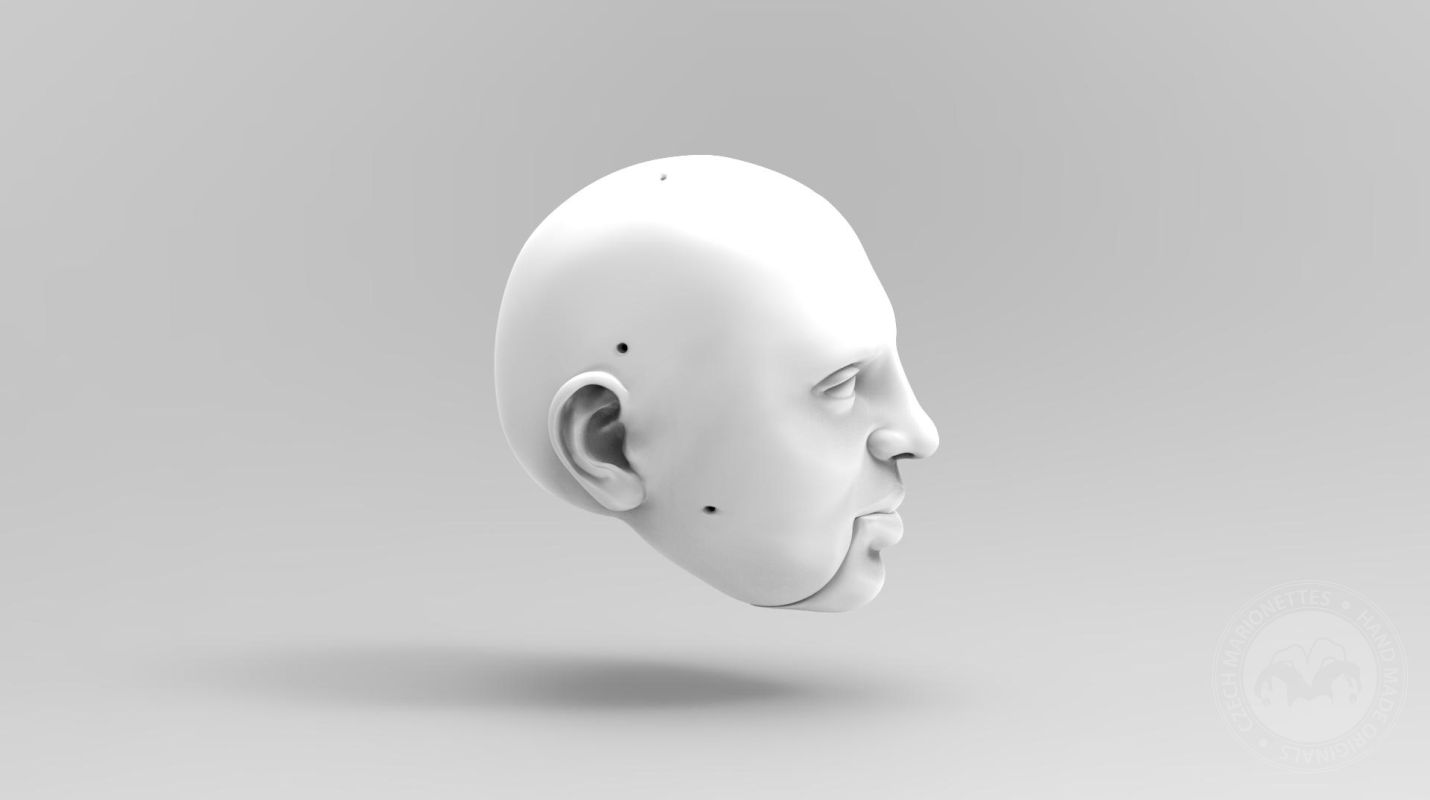 Buy and download model of puppet head - man with a greek nose type with movable chin for printing your new marionette. You can playfully print the model out on any 3D printer.