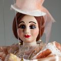 The Rosie puppet is here to keep you company not only at home, but also on the road. The little countess has everything at hand and also looks irresistible! Rosie is a real lady. She can always dress perfectly and match the accessories beautifully. Her hair is tied in a nice ponytail and her make-up is according to the latest fashion. The dress is tailor-made and decorated to the smallest detail. If you like fashion, decorative puppets and soft, pastel colors, Countess Rosie is the right choice!Puppets like the Rosie Countess are produced in limited editions in a few pieces. The head, arms and legs are cast and hand-painted, the body (skeleton) is made of linden wood. The marionette has a traditional control, it is connected to the controller with a wire and classic threads are used to control the hands and feet.Take a look at the beautiful and detailed work on a beautiful tailor-made costume. It is made of high quality fabrics with a great emphasis on precise processing. High decoration is absolutely typical for this collection.