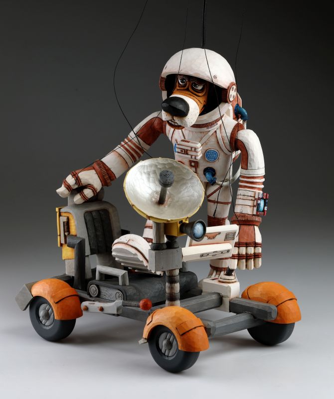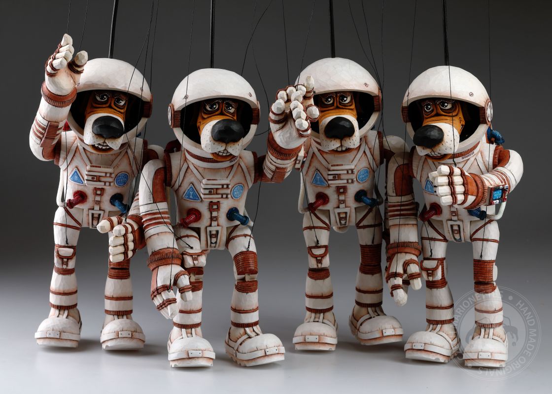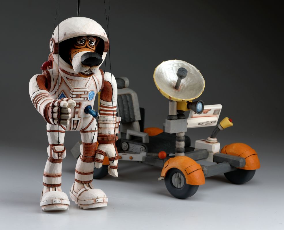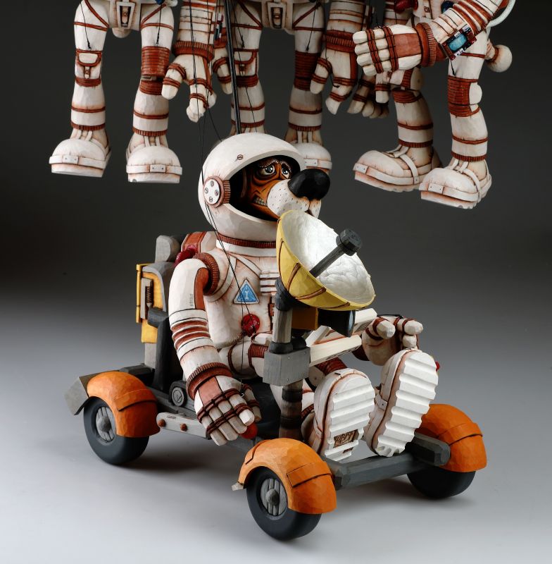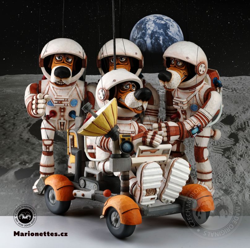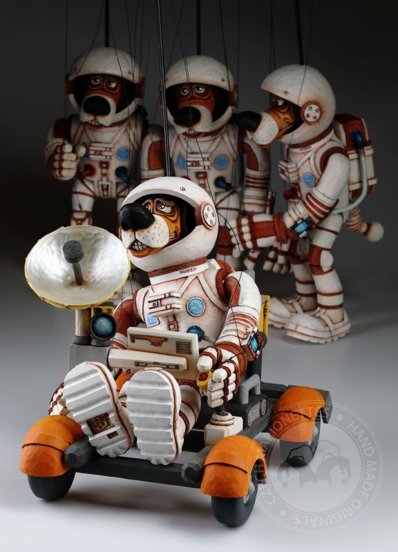 Marionetas Dogstronaus talladas a mano - Misión a la Luna