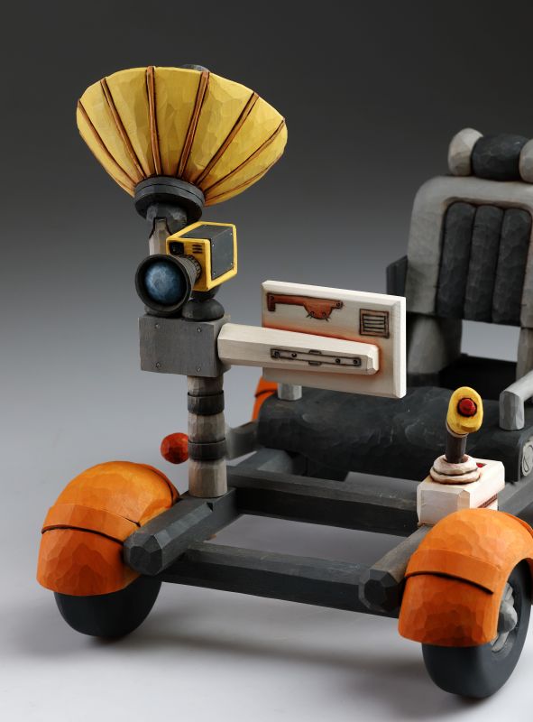 Estos intrépidos astronautas caninos llevan la firma única de su creador, Jakub Fiala. Cada perro está meticulosamente tallado a mano en madera de tilo, cuidando hasta los más pequeños detalles. Puedes apreciar los trajes espaciales bellamente tallados y pintados, las expresiones faciales increíbles y una paleta de colores asombrosa. Además, cuentan con un impresionante coche espacial, también hecho a mano, que combina perfectamente con sus trajes.