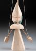 Los brazos de la marioneta están unidos con simples cordones de cuero, lo que permite un leve movimiento mientras mantiene una estructura sólida. Esta marioneta no solo es una pieza decorativa encantadora, sino también una adición intrigante para cualquier colección de marionetas artesanales, capturando la esencia de la artesanía tradicional y el arte popular.