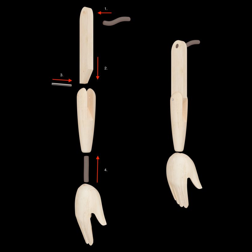 Está disponible como marioneta de madera tallada o como producto impreso en 3D, ideal para titiriteros, performers, estudiantes o creadores.