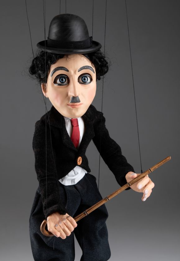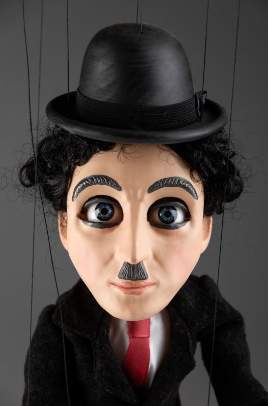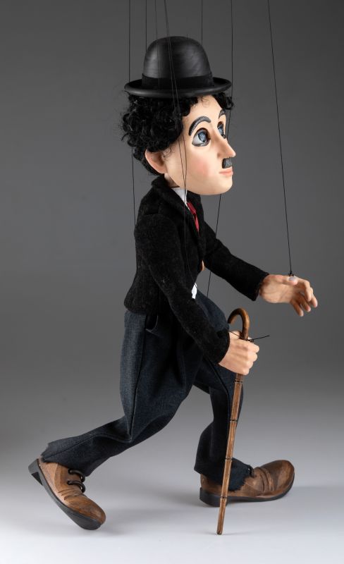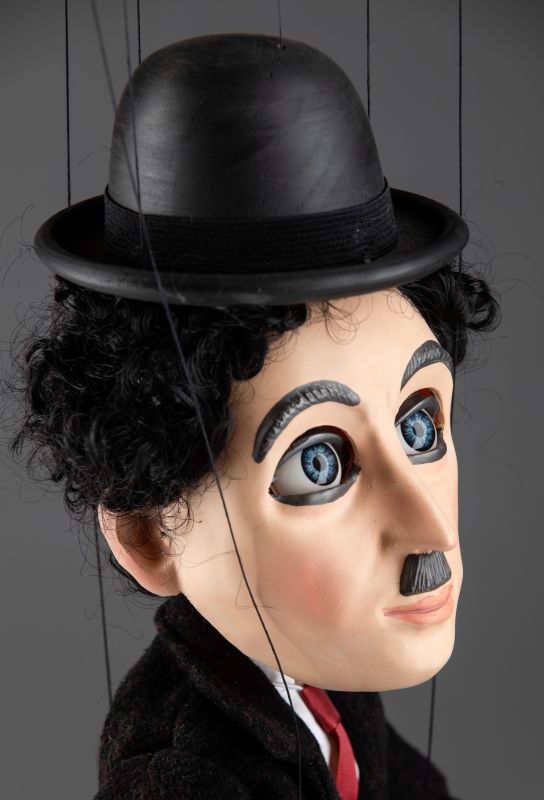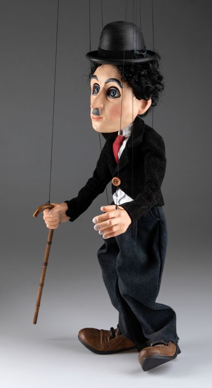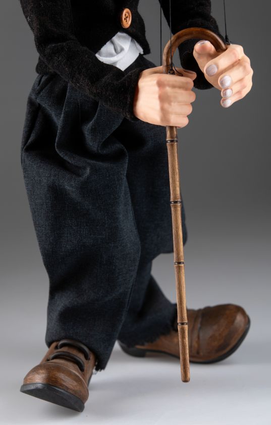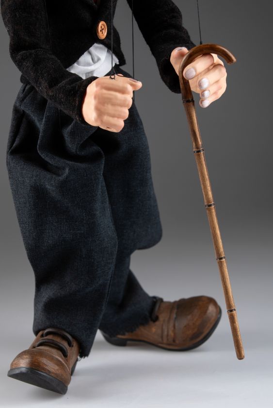 Impresionante marioneta del famoso Charlie Chaplin ¡Charlie Chaplin! Su nombre evoca tantas respuestas emocionales: alegría, risas, lágrimas, suspenso, drama... Nuestro títere Charlie Chaplin tiene todo lo que un maestro como él debería tener. Viste un traje bien hecho, zapatos de cuero negro, bastón y su conocido bombín. Su cuerpo de madera está tallado a mano, y su cabeza y manos están hechas de resina fundida y luego pintadas a mano. Reseña de uno de nuestros clientes \"OK...entonces la marioneta de Charlie Chaplin no es buena.....¡¡¡SU artesanía INCREÍBLE!!!! ¡¡¡¡GUAU!!!! ¡Todos los que muestro quedan impresionados! ¡¡¡Muchas gracias!!!!Ahora, Howdy Doody es el próximo que me gustaría comprar. Déjame saber qué podemos hacer. ¡¡Gracias de nuevo!!\" Reseña de la marioneta de Charlie Chaplin, enviada por correo electrónico por uno de nuestros clientes. ¡Muchas gracias, Darín!