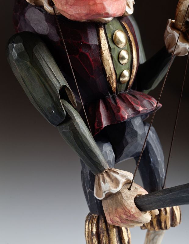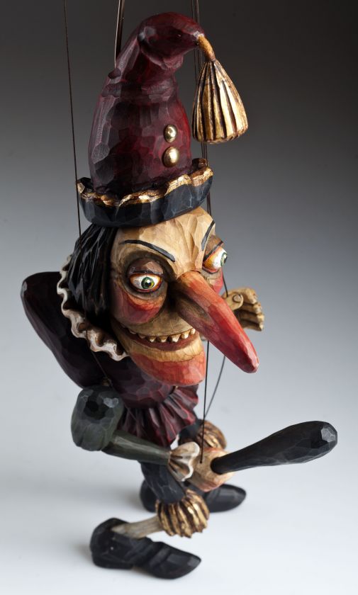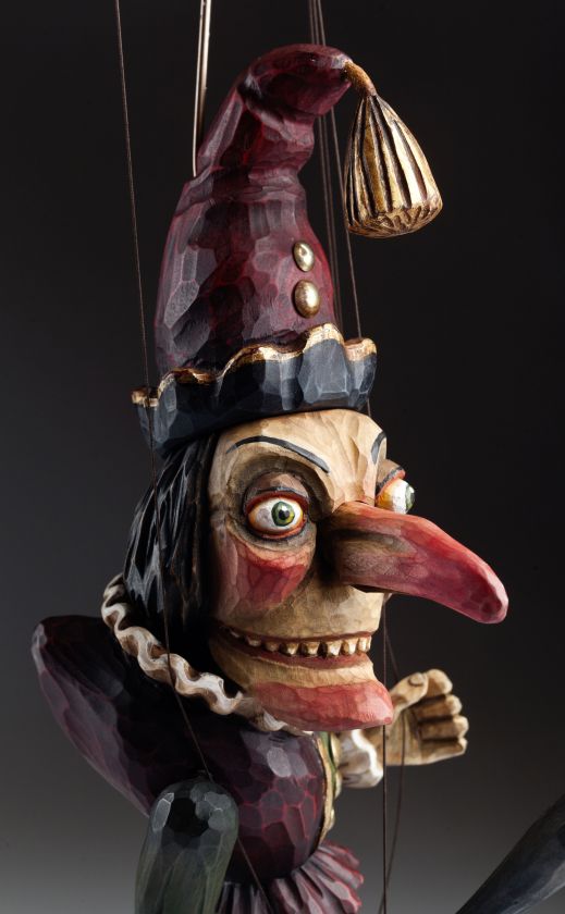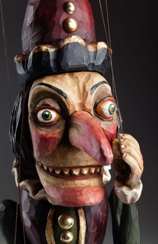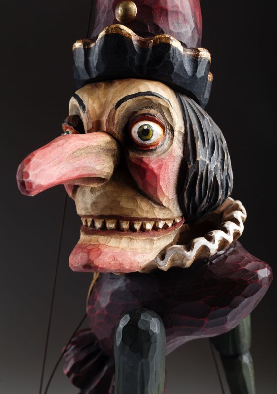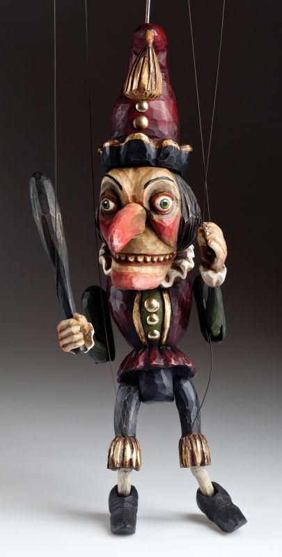 Mr. Punch – marioneta de madera original ¿Alguna vez has oído hablar de Punch y Judy? Una pareja de marionetas muy famosa que actúan mucho junto al mar en los balnearios ingleses. Todos esperamos que pronto veamos la llegada de Judy, la esposa de Punch, así como de todos los demás personajes, Constable, Baby y Crocodile;) Su movilidad es de nivel semiprofesional por lo que no es difícil moverse. Estamos seguros de que los titiriteros de nivel elemental podrán jugar con él.\"