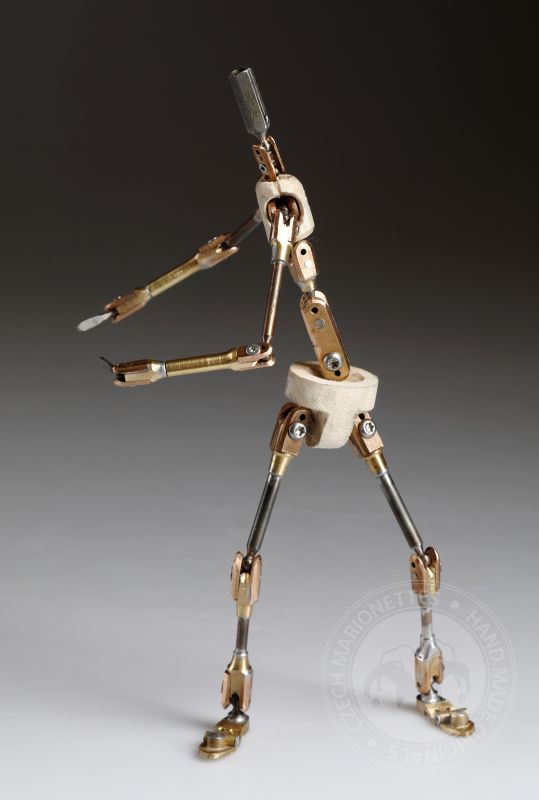 Les marionnettes en stop motion sont un domaine différent des marionnettes à cordes classiques. La première étape consiste à faire fabriquer les squelettes. Il est très important d'obtenir un produit personnalisé de haute qualité car le mouvement et la stabilité des marionnettes dépendent principalement des squelettes. Nous avons fait fabriquer le nôtre par M. Vinš, qui est bien connu pour fabriquer les meilleurs squelettes en métal en stop motion. Vous pouvez voir des photos dans la galerie. La prochaine étape consisterait à envelopper ces parties du corps dans un matériau spécial semblable à de la mousse, à s'assurer que toutes les articulations bougent bien, puis à confectionner des costumes personnalisés.