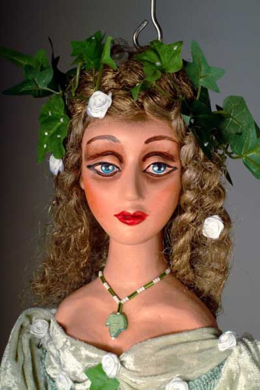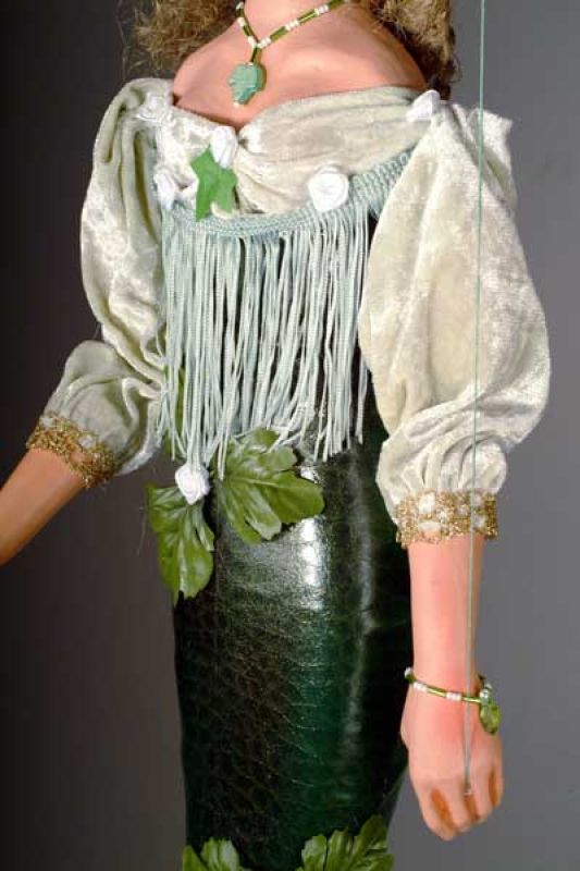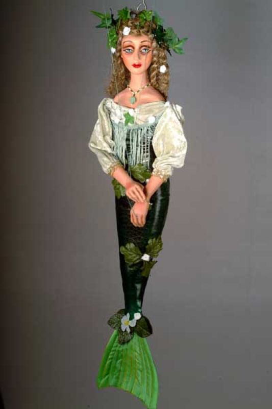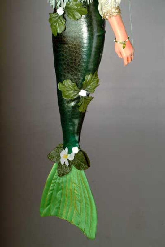 One of the new mermaids (or sirens perhaps). Notice the amazing attention to detail throughout this marionette, indeed, all of the artist´s work, the patterned scales, flower tail, long blonde colored hair and noble expression. ***Please note that each marionette is a unique, orignal work of art and may differ slightly from the picture above. Each marionette takes 5 days to create.