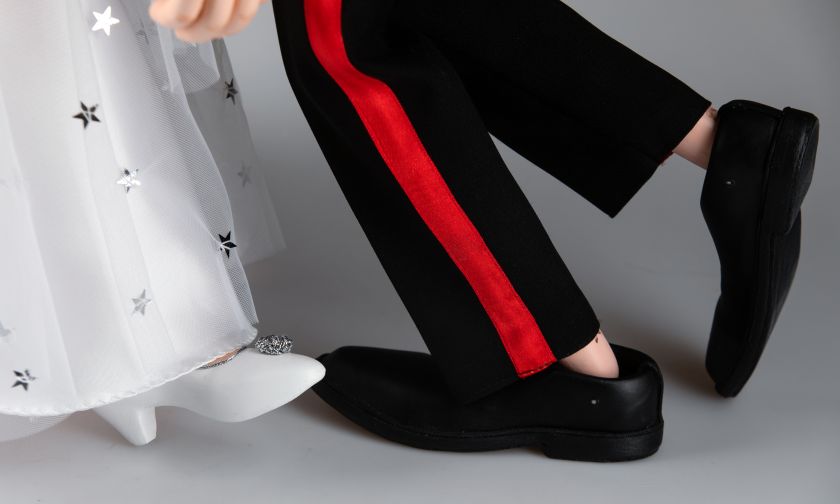Ces marionnettes ont été réalisées sur commande. Tout d’abord, nous avons créé des modèles 3D réalistes de leurs visages, imprimé toutes les parties du corps, assemblé les corps et poursuivi la peinture, la coiffure et la couture de costumes très détaillés. Chaque marionnette mesure 60 cm (24 pouces) de hauteur et possède une grande capacité de mouvement. Nous avons prêté beaucoup d'attention aux détails. Remarquez les superbes coiffures, robes ou accessoires comme des médailles ou des broderies. Le tout fait à la main par notre incroyable équipe d’artistes marionnettes.