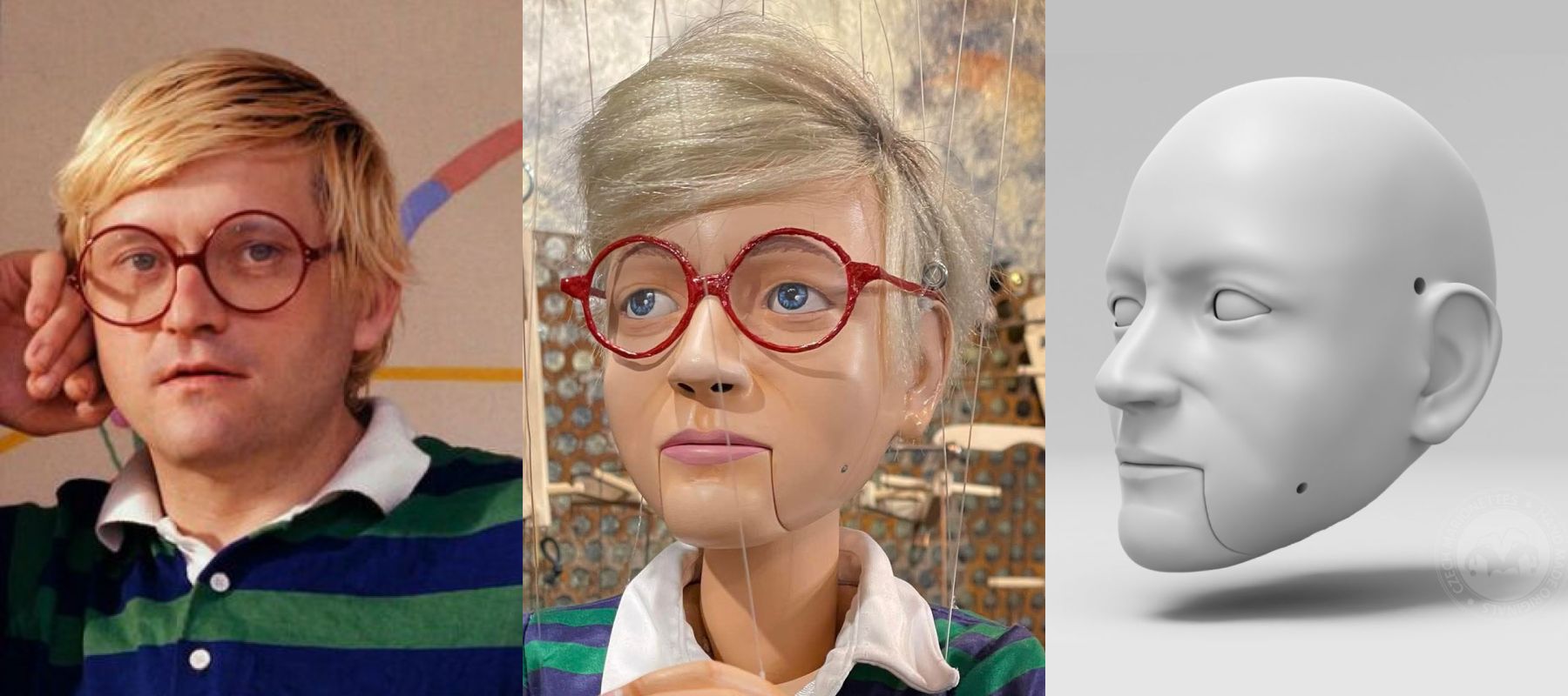 Lunettes rondes, sourire doux et une étincelle de malice – cette tête capture l’esprit du maître britannique du pop art David Hockney en version marionnette. Le corps complet est vendu séparément.
