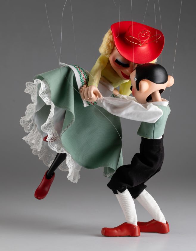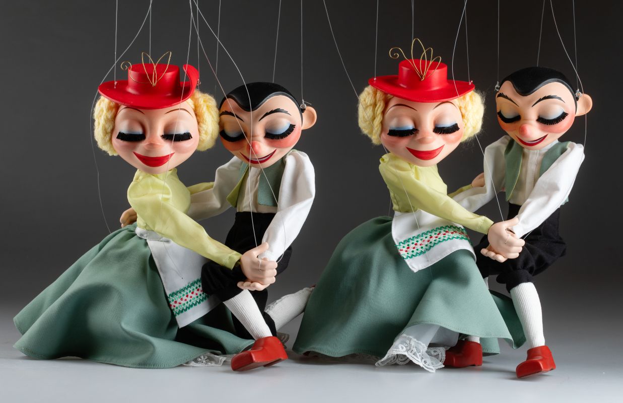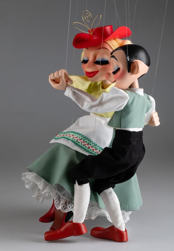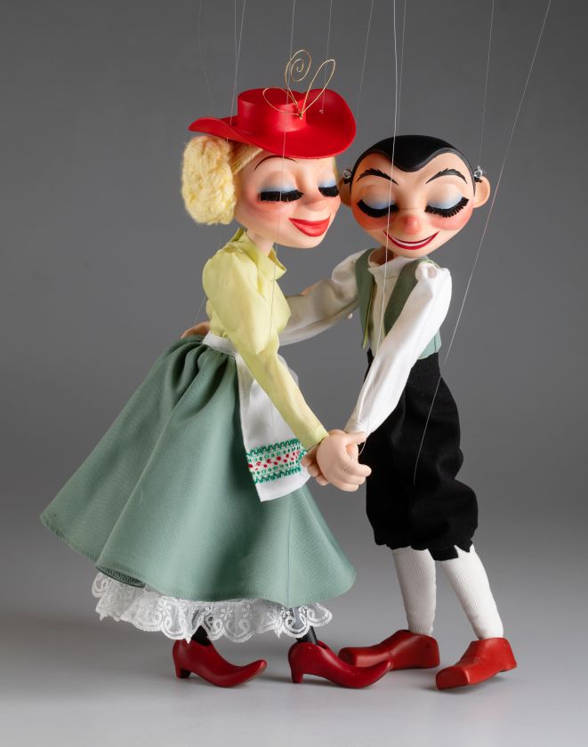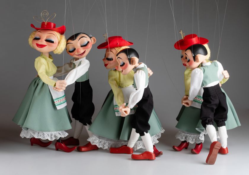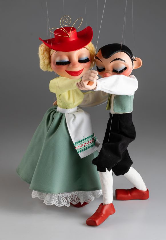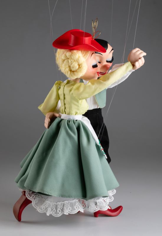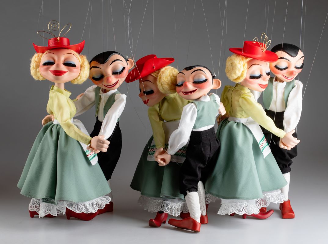 Inspirées de la célèbre scène « Lonely Goatherd » du film La Mélodie du bonheur, ces ravissantes marionnettes donnent vie aux joyeux villageois dansants dans un style traditionnel charmant. Les personnages originaux ont été conçus et fabriqués par les maîtres marionnettistes américains Bill et Cora Baird, dont les créations emblématiques continuent d'enchanter le public aujourd'hui.