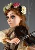 Faites vivre la musique avec cette marionnette de violoniste, conçue pour la scène. Cette magnifique marionnette capture l'essence d'une musicienne avec son visage calme, ses cheveux flottants et sa couronne de fleurs délicates. Elle tient un violon sculpté à la main et un archet, prête à jouer.