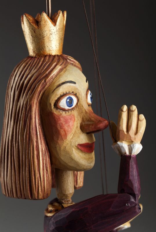 Cette marionnette princesse fait partie de ces marionnettes classiques avec lesquelles vous ne pouvez pas vous tromper. Tout est sculpté et peint à la main. Jan Růžička a de nouveau fait un travail incroyable.