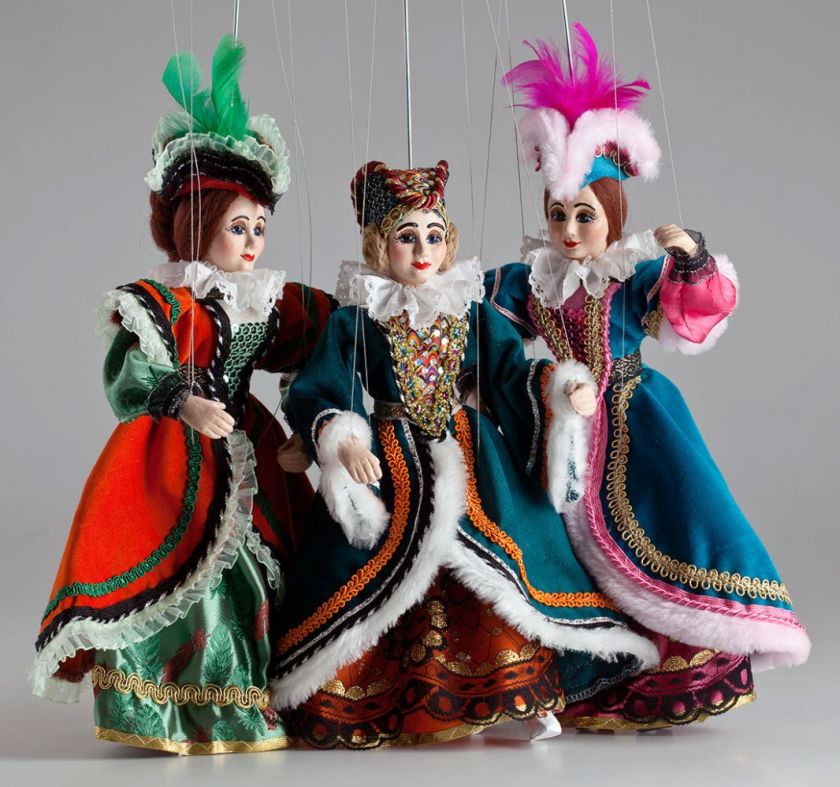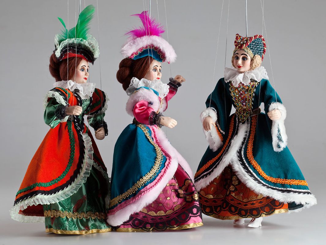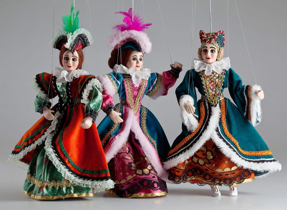 Marionnettes magiques de dames vêtues de robes richement décorées. La photo est comme un exemple de style, laissez-vous surprendre quelles marionnettes nous choisirons pour vous...